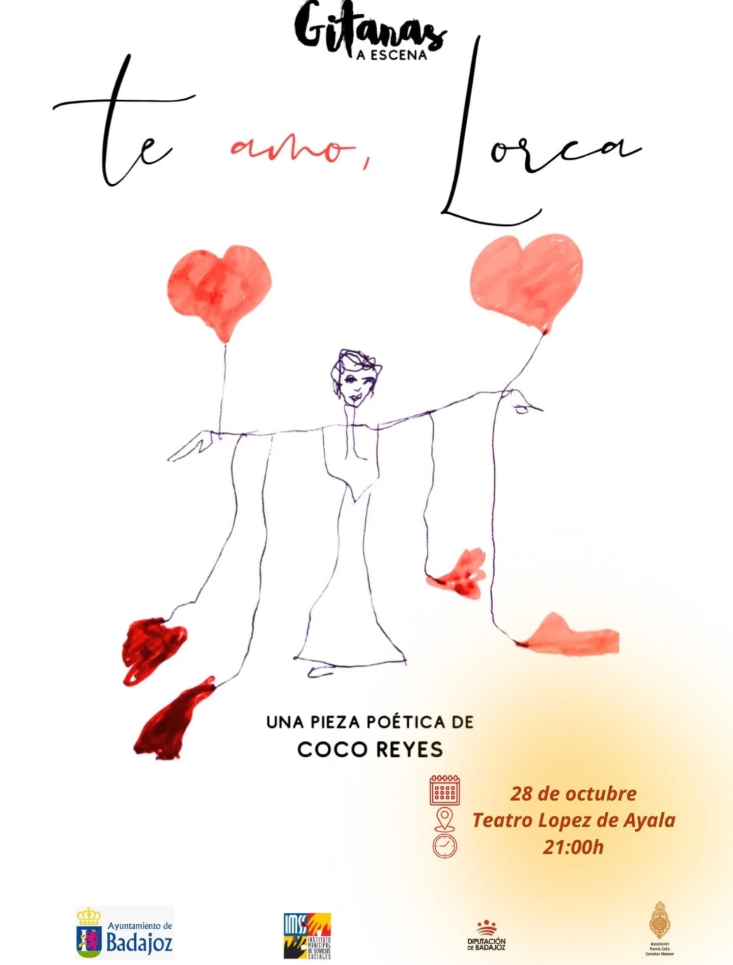 El día 28 de octubre de 2025 a las 21:00 horas en el Teatro López de Ayala de Badajoz, tenemos el placer de asistir al espectáculo “Te amo Lorca”, de la mano de la compañía Gitanas a Escena, dirigida por Coco Reyes ( actriz, artista y escritora gitana ) y cuya compañía está formada exclusivamente por mujeres de etnia gitana.